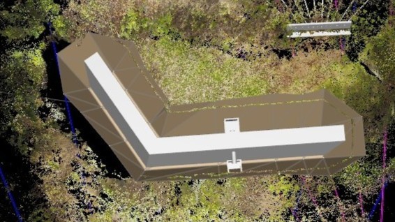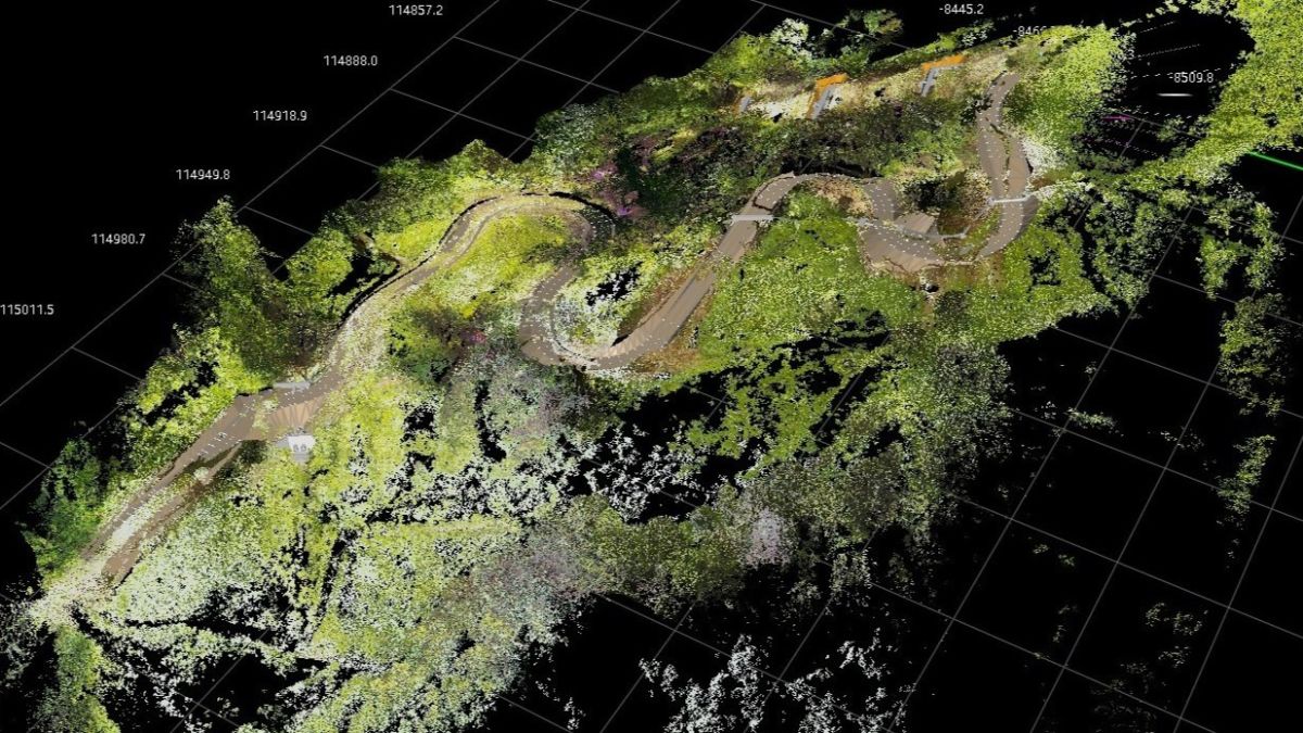 ドローン(UAV)や地上型レーザースキャナー(TLS)を使用して、工事現場の地形の3次元データを計測します。この計測によって、工事着手前の現況が詳細に把握され、今後の工事の基礎データとなります。