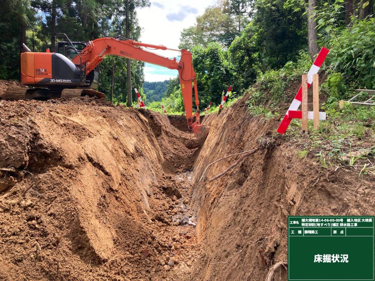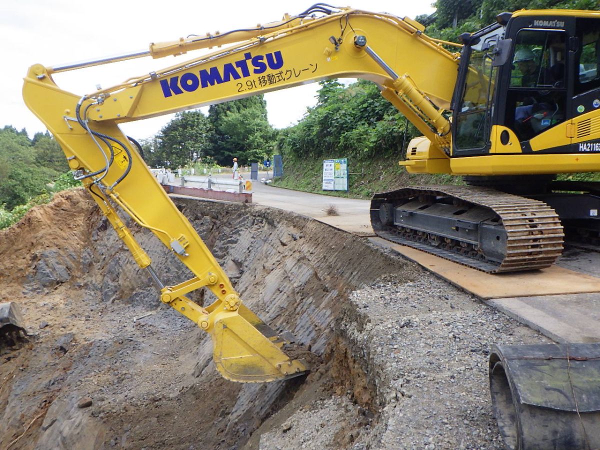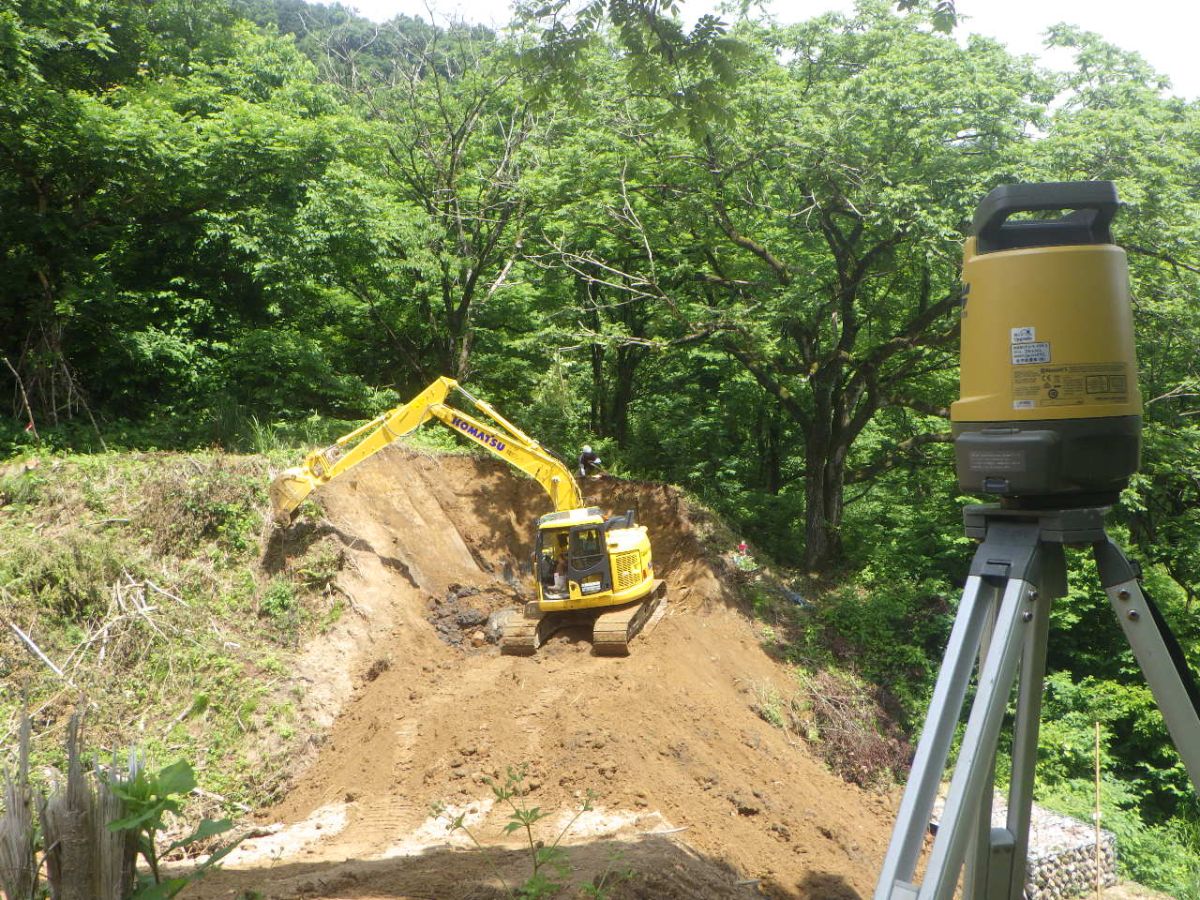 当初、GNSS型のICT建機を使用しようとしましたが、携帯電話の電波が入らず、衛星もキャッチしないため、機械が場所を認識しない、精度が悪いなどのトラブルが度々発生しました。しかし試行錯誤を繰り返し、山間地の現場に適した“自動追尾型トータルステーションを用いたシステム”を導入したことで問題はほぼ解消され、今ではICT建機は現場に無くてはならないものになっています。