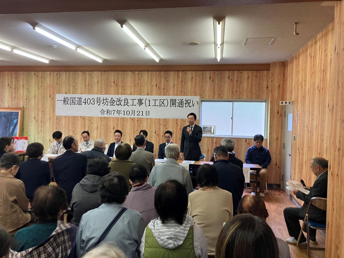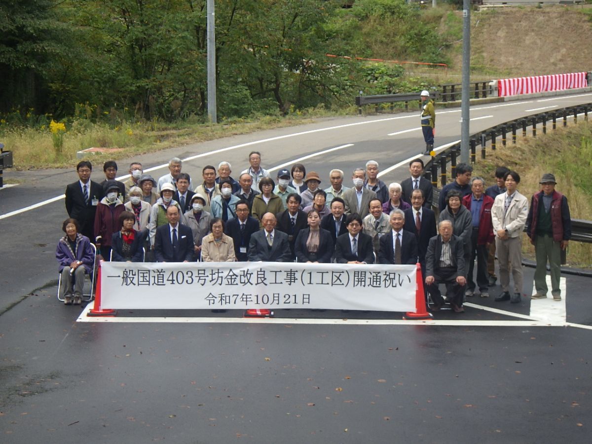 一般国道403号坊金改良工事(1工区)が竣工となり、坊金町内会主催の開通祝いに参加させていただきました。