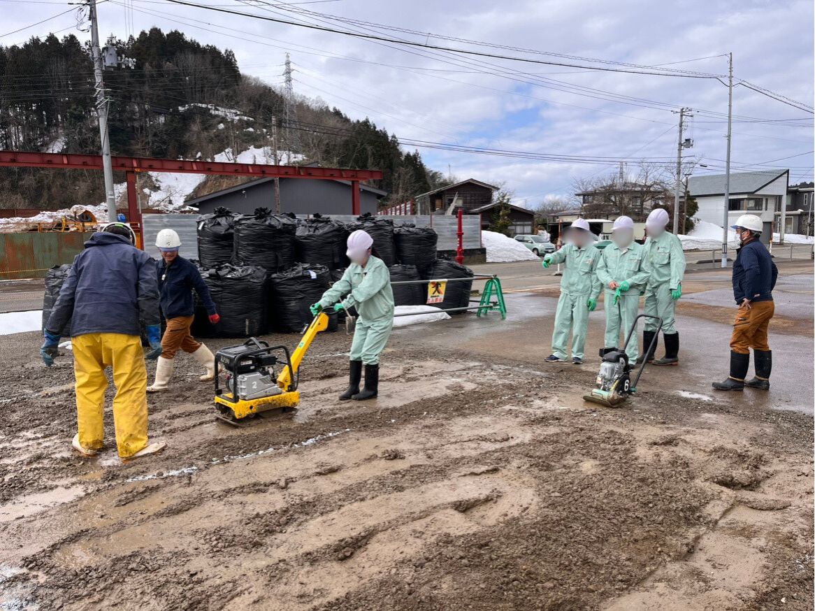 また、日ごろ絶対に目にしているものをつくるのに使われている小機械を体験してもらおうと、実際にやってみると難しい&面白いコンパクターとバイブレーターで締固めを体験してもらいました。