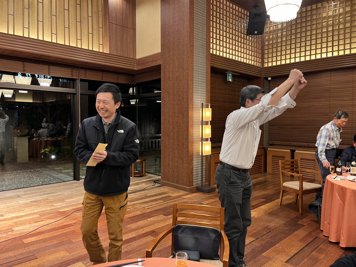 美味しい食事とお酒を楽しむだけでは物足りない、ということで今回は会の中盤に《数字当てゲーム》というもの企画しました。見事数字を当てた人にはピタリ賞として1万円が贈られるとあって、皆が真剣に考えてくれました。(笑)
