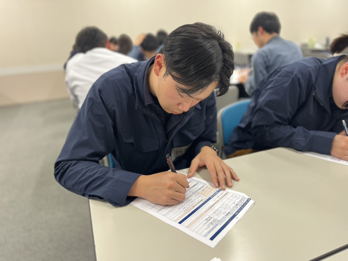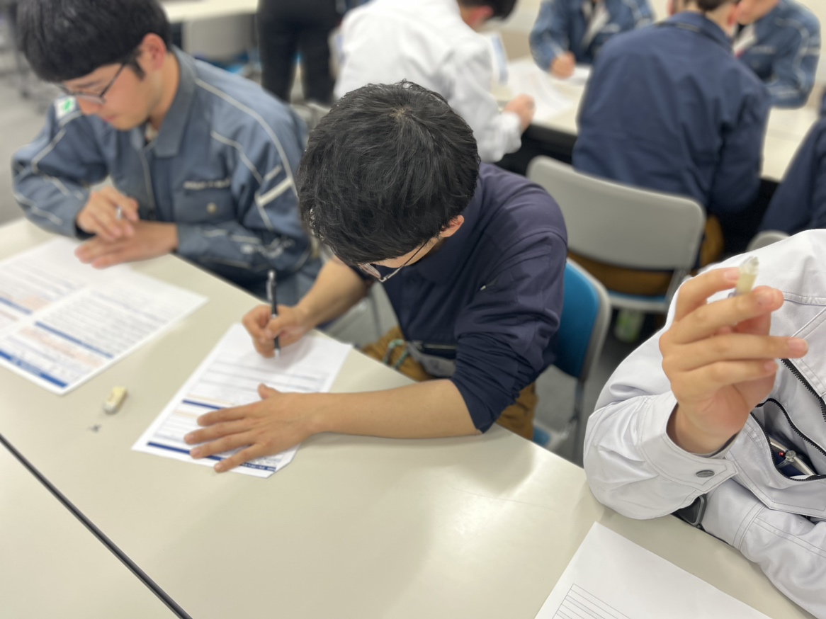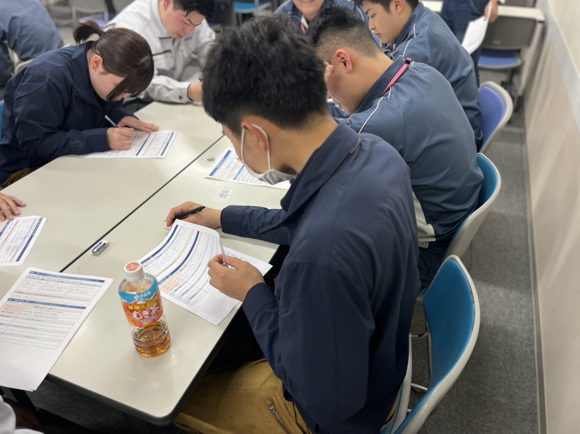 講義だけではなく、「事例を用いた課題の抽出と改善手法の理解及び演習」・「業務遂行能力向上に向けた目標設定およびプレゼンテーション」といった自分事として考える個人ワークの実施もありました。3年目社員は一通り仕事をこなした経験を活かして流石と思う回答を導き出し、2年目社員は持てる知識をフル動員して取り組み、新入社員はわからないなりに懸命に取り組む姿が見られました。